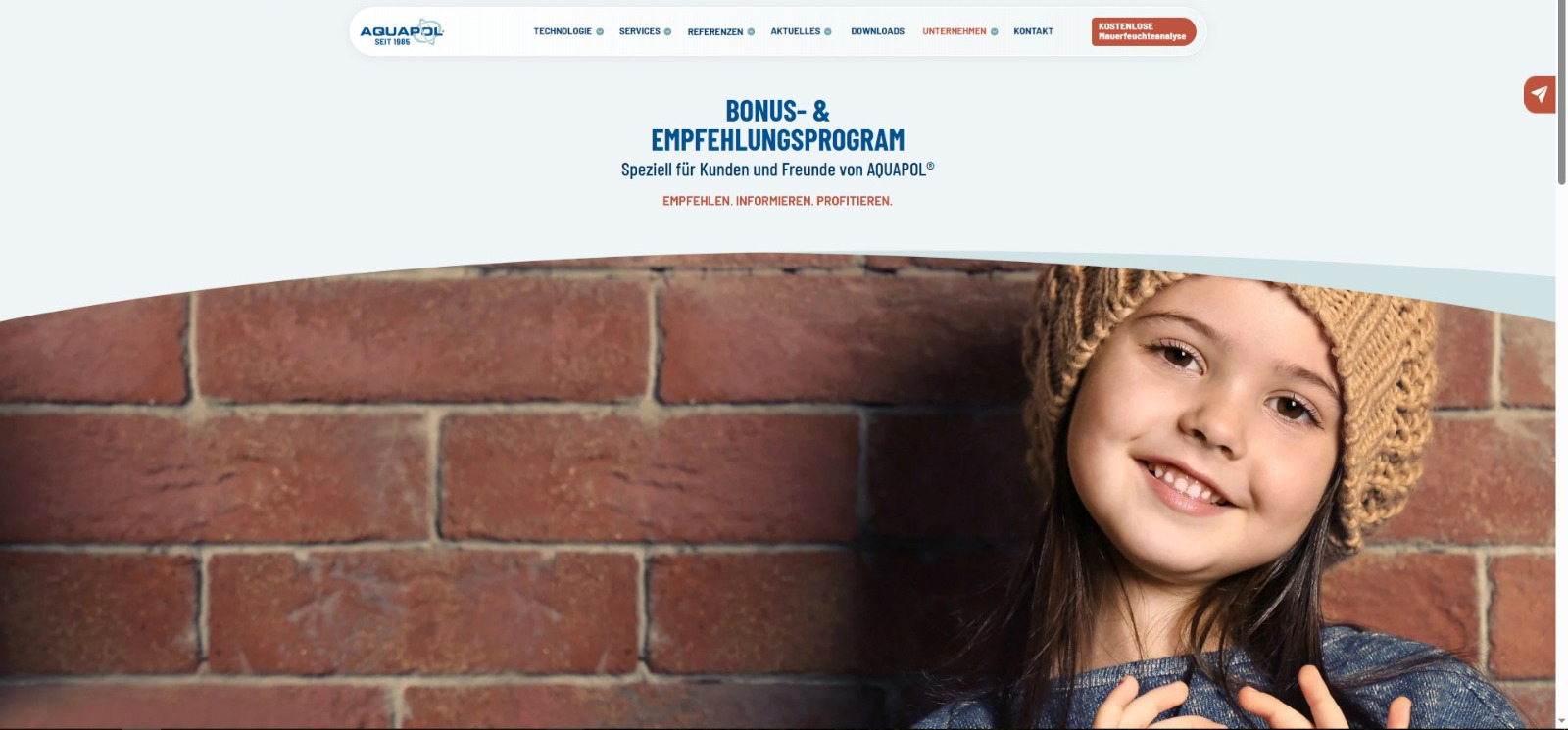 Viele unserer Kunden kommen seit jeher über Empfehlungen zu uns. Mit diesem Programm möchten wir uns bei Menschen bedanken, die AQUAPOL® weiterempfehlen und damit dazu beitragen, dass weitere Gebäude trockener und gesünder werden können.