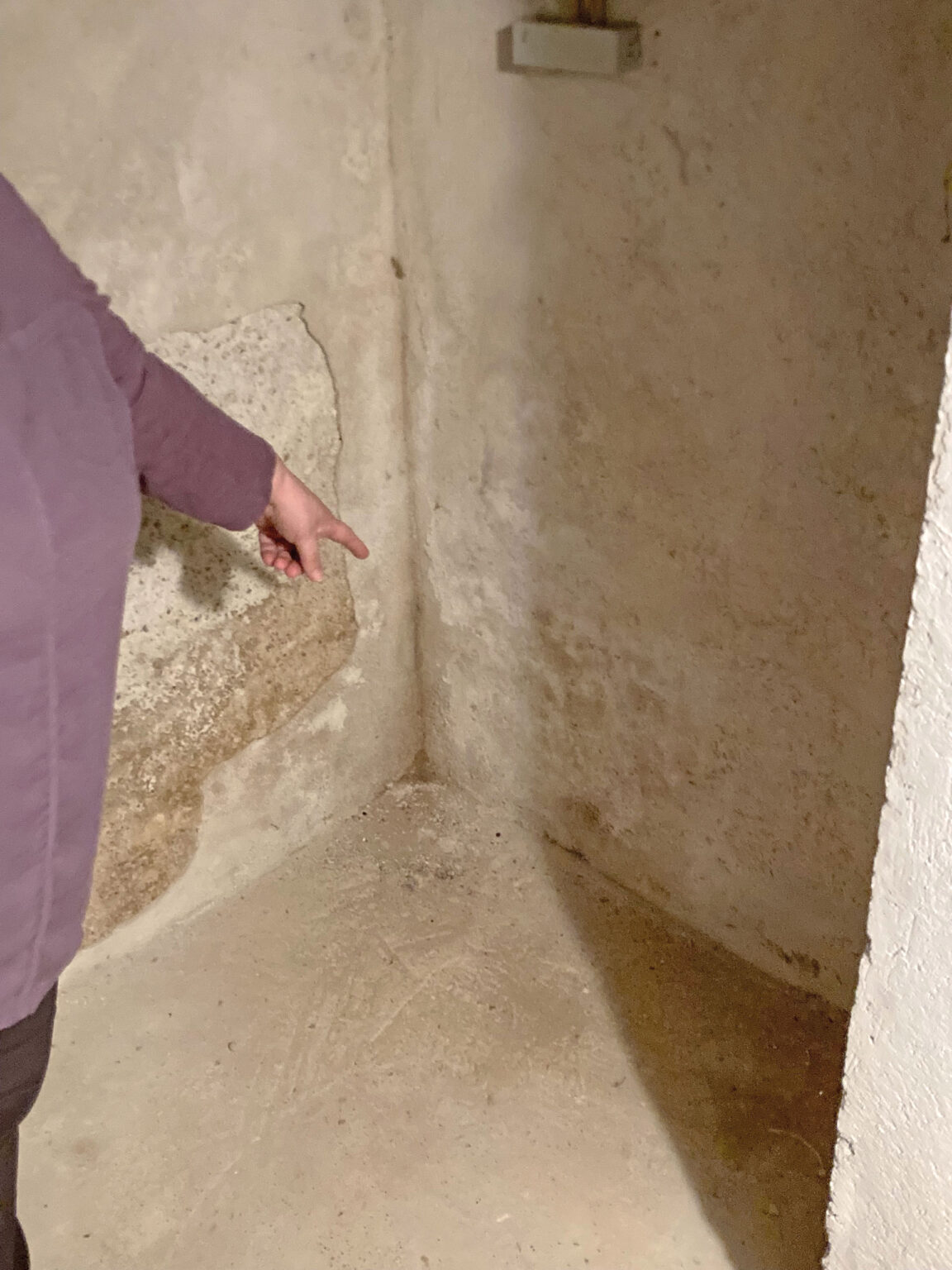 Unangenehmer Modergeruch im gesamten Wohnbereich, Schimmel in einigen Eckbereichen der feuchten Außenmauern und Feuchteflecken am Verputz, wie auch auf den Bildern deutlich erkennbar ist, waren typische Symptome der aufsteigenden Feuchte.